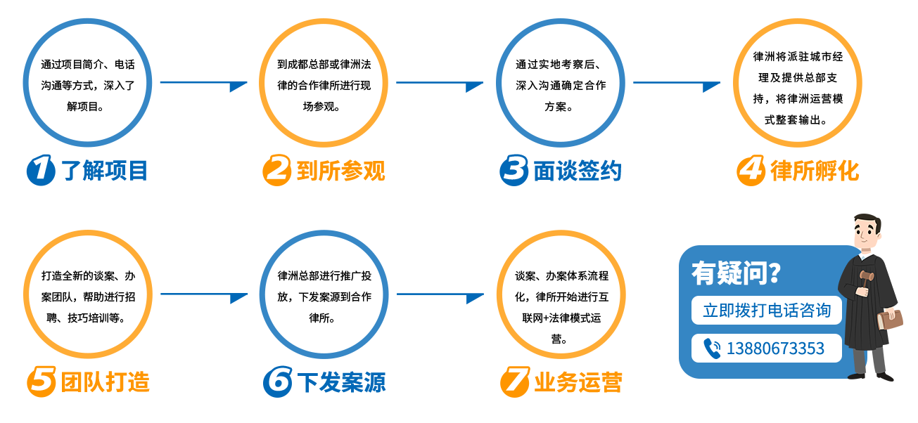 将律洲成熟的互联网+法律模式复制到合作律所,进行律所孵化,让合作律所快速、稳定地成功转型! 律洲之所以能推出孵化项目,是建立在深知网推所经营之道, 同时已有成熟的市场、谈案、办案运营管理模式的基础之上,可以把任何一家律所打造成跟律洲直营所一模一样的网推所。而其他平台仅仅只是法律业务上的合作, 合作终止,一切将回到原点。授人以鱼,不如授人以渔!