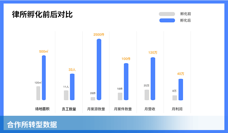 近两年,国内诸多大型律所均纷纷开始进行互联网+法律模式的业务转型。从2019年开始,律洲集团为了快速平台化,特推出“律所孵化项目”,为传统型律所向互联网化律所转型提供一站式解决方案——从组织架构、招聘体系、薪酬体系、案源输出与转化体系、系统信息化集成、财税等多方面,加之职业经理人直接派驻的方式,目前已成功孵化的律所达100+家。